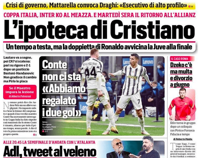 SECOLO XIX – Il Decimonono parla di Ballardini come “mangia-piccole a caccia del gran colpo“. Il riferimento è chiaramente alla gara contro il Napoli in programma sabato e al ritmo impresso dal tecnico rossoblu sulla corsa salvezza, nell’ambito della quale ha guadagnato punti su tutte le formazioni che seguono – e in larga parte precedono – il Grifone in classifica. Si parla poi in due brevi richiami del rientro di Cassata e Biraschi a Pegli, avviati sulla via del recupero, nonché del saluto di Lerager, che dopo due anni lascia Genova. Infine, altra menzione per Gianluca Scamacca e la sua “operazione recupero” dopo la permanenza in rossoblu.