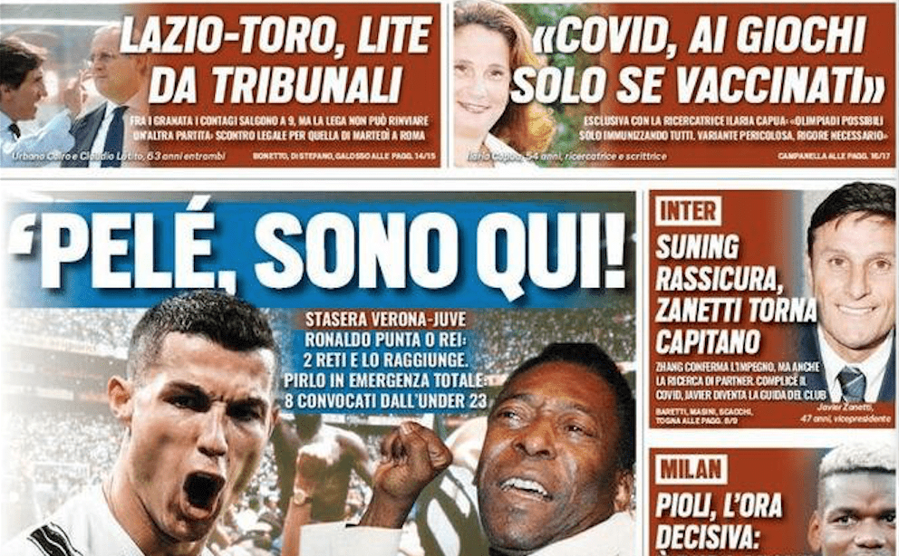 GAZZETTA DELLO SPORT – Si scalda Darmian, favorito per sostituire Hakimi sulla fascia destra. Il Genoa è fra le 9 società di Serie A che si sono astenute nella votazione per l’assegnazione del diritti tv nel triennio 2021/2024. Il motivo non starebbe nella contrarietà all’offerta di DAZN, che supera di gran lunga quella di Sky, bensì la volontà di affrontare il tema insieme a quello relativo ai fondi. L’ASL di Torino alza il muro: con 10 positivi all’interno del gruppo-squadra e 5 familiari (14 su 15 avrebbero contratto la variante inglese) è probabile che vengano bloccate anche le trasferte a Roma con la Lazio e a Crotone. “Oggi non esistono le condizioni di sicurezza per permettere al gruppo squadra di tornare a svolgere il proprio mestiere” ha dichiarato il direttore del dipartimento di Prevenzione dell’ASL Città di Torino. Torino che, in una classifica che tiene conto di tutte le positività nella stagione 2020/2021, nella giornata di ieri ha superato proprio il Genoa (18) con 19 tesserati. La rosea dedica spazio a Perin, che con Ballardini vola ad altezza Handanovic: dopo una prima parte di stagione in cui poco o nulla era andato per il verso giusto, il portiere rossoblu è tornato protagonista. Nelle probabili formazioni spunta Rovella al posto di Badelj, con Goldaniga sul centrodestra. Sulla carta non ci sarà partita, la macchina interista non aveva mai girato così bene ma il Grifone ha rimesso le ali e gli artigli.