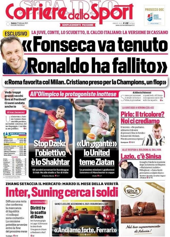 CORRIERE DELLO SPORT – Il quotidiano sportivo riprende le parole di Criscito ai microfoni di SkySport: “Ballardini una persona seria che crede nel suo lavoro” ha dichiarato il capitano. Conte respira, nessuno dei suoi giocatori è risultato positivo al Covid-19 nei test, che verranno ripetuti anche quest’oggi in vista della partita con i rossoblu. I risultati? Arriveranno tra stasera e domenica mattina. Questa mattina, nelle probabili formazioni, la coppia favorita non è più quella formata da Pjaca e Destro ma da Shomurodov e Scamacca. Capitolo Roma: Dzeko salterà anche la partita contro i rossoblu.