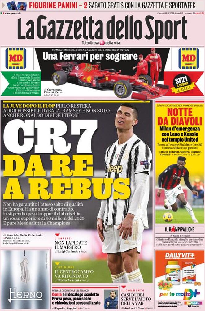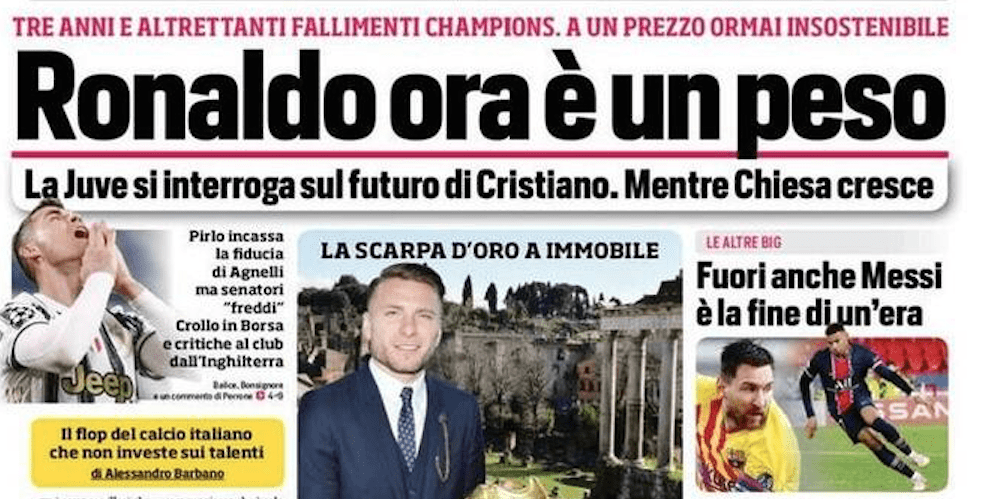 LE PRIME PAGINE DEI QUOTIDIANI SPORTIVI