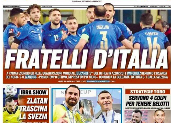 GAZZETTA DELLO SPORT – Anche il quotidiano in rosa torna sul ruolo di Nicolò Rovella come perno del centrocampo dell’Under 21, specialmente alla luce dell’assenza di Tonali (che rischia du turni di squalifica). Rovella che è intervenuto ai microfoni della RAI, a due giorni dalla sfida contro la Spagna, spiegando come “loro giocano bene, muovono la palla, ma anche noi abbiamo giocatori forti e possiamo dare loro fastidio, non abbiamo niente da invidiare, l’importante è avere testa e concentrazione“. In un breve articolo focalizzato sulla Juventus si legge dei giovani lanciati da Pirlo e spariti un po’ dai radar. In primo luogo Frabotta e Dragusin, ma c’è spazio anche per Portanova: si legge sulla Gazzetta dello Sport a pagina 15 che “mandato a gennaio “a giocare” al Genoa, dopo qualche spezzone in rossoblu ha trovato ancora meno spazio, facendo perdere le sue tracce“. Infine, la rosea parla anche dell’ultimo report CIES in cui Shomurodov risulta essere il giocatore di maggiore valore del club rossoblu coi suoi 15 milioni, incidendo per oltre il 25% sul valore della rosa rossoblu.