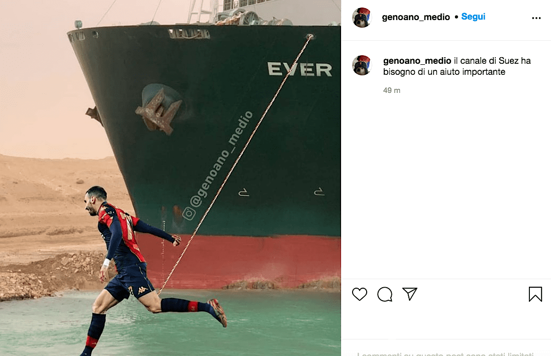 Sono state oltre una dozzina le imbarcazioni ad aver aiutato il porta-container Ever Given a liberare il Canale di Suez nelle scorse ore, dopo giorni di scavi e tentativi. Fra i rimorchiatori ad aver spinto il colosso, rimasto incagliato nel cuore del traffico commerciale per più di 6 giorni, secondo alcuni tifosi del Genoa non c’è stato solamente l’italiano Carlo Magno. A dare una mano sul fianco sinistro è arrivato anche Davide Zappacosta. Ovvero? Si tratta di un fotomontaggio, diffuso dalla pagina “Genoano Medio”, che ritrae il laterale rossoblu intento a spostare l’Ever Given con la sola forza della corsa e delle gambe. Non si tratta del primo esperimento social sul tema: nelle scorse ore, infatti, anche società come Chelsea (squadra da cui è in prestito proprio Zappacosta) e Mercedes (con la monoposto di Hamilton a trainare la nave) hanno fatto il giro del web con siparietti simili. “Il canale di Suez ha bisogno di un aiuto importante” si legge. Bisogna spingere? Ci pensa Zappacosta.