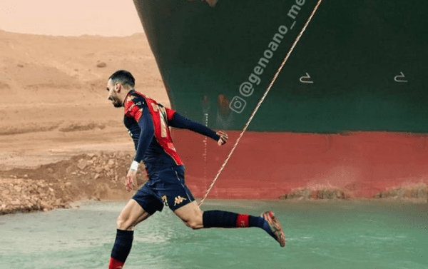 Genoa, il fotomontaggio social: Zappacosta libera il Canale di Suez