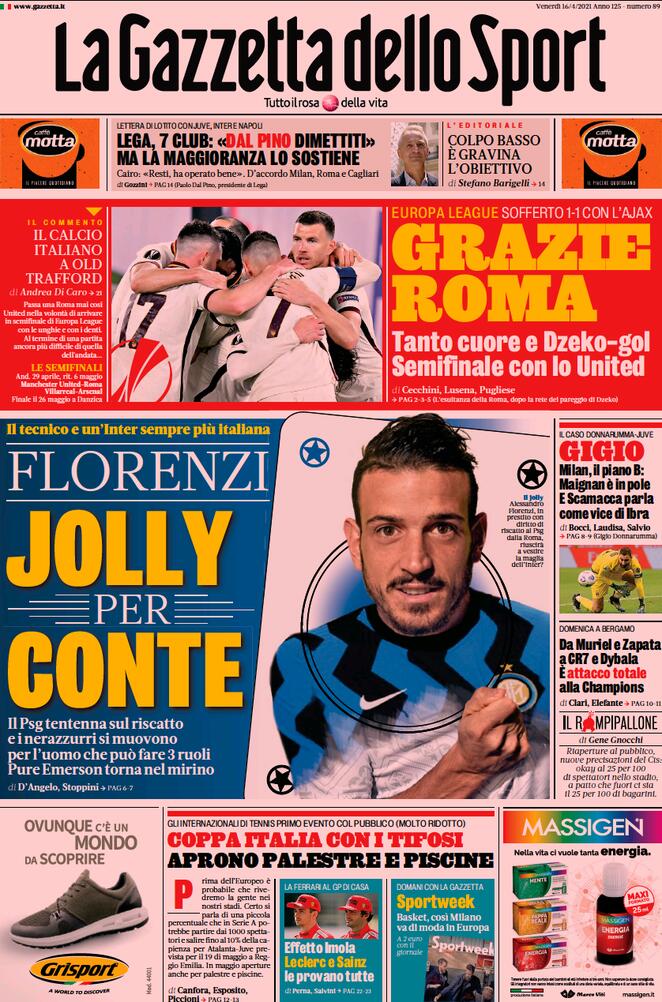 GAZZETTA DELLO SPORT – Il quotidiano in rosa parla anzitutto del futuro di Gianluca Scamacca, di cui domani su Sportweek sarà disponibile una lunga intervista. Si parla in particolare di un indizio da lui lanciato che lo avvicinerebbe al Milan la prossima stagione (il giocatore è di proprietà del Sassuolo). “Vice di un campione di 39 anni? Sì“. Scamacca che parla comunque anche del suo momento al Genoa, con tre gol e un assist nelle ultime tre partite. “Da quando al Genoa è arrivato Ballardini sto crescendo anche sotto questo aspetto” spiega l’attaccante rossoblu riferendosi al pressare i difensori avversari. In ottica Milan-Genoa, si scrive anche della possibilità ponderata da Ballardini e dal suo staff di tenere fuori tutti i diffidati rossoblu (Radovanovic, Pandev, Zajc e Ghiglione) dalla sfida contro i rossoneri. Il tutto nell’ottica di avere a disposizione tutti in vista delle due gare interne contro il Benevento.