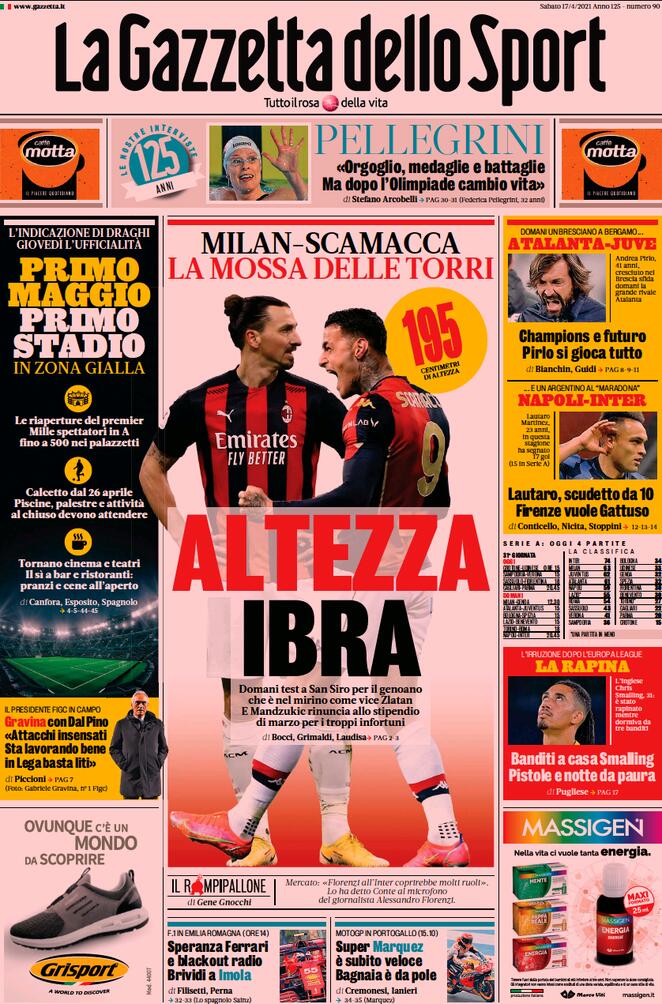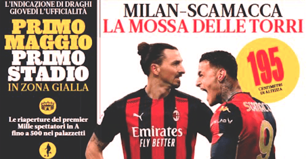 GAZZETTA DELLO SPORT – Prima pagina per Gianluca Scamacca, finito nel mirino rossonero come vice Ibrahimovic per la prossima stagione e finito sulle pagine di SportWeek, dove l’attaccante genoano ammette di ispirarsi a giocatori del calibro di Ibrahimovic, Lukaku, Haaland, Cristiano Ronaldo, Dzeko, Lewandowski e Suarez. Sul suo futuro e sulle modifiche apportate al suo modo di giocare con l’arrivo di Ballardini, Scamacca ha ammesso: “Le voci di mercato sono uno stimolo. Gioco in Serie A, il sogno di sempre: vedo solo cose belle. I problemi sono altri e io lo so bene. Quest’anno voglio salvare il Genoa, lasciare un segno, anche se non è detto che vada via. Quando a dicembre Ballardini è arrivato abbiamo cambiato sistema di allenamenti e di gioco. Ho faticato un po’ ad adattarmi. Adesso, se guardo me stesso in campo, mi accorgo di giocare in maniera diversa rispetto al passato ed è merito dell’allenatore. Sto più dentro alla partita, mi muovo meglio. Il mister mi chiede di correre avanti e indietro, di aiutare la squadra. Sento che sto crescendo come uomo e come giocatore”. Il flirt fra il Milan e Scamacca è partito da tempo. La rosea intervista anche Roberto Muzzi, ex collaboratore nel Genoa di Andreazzoli e suo primo allenatore ai tempi della Roma: “Notai in lui qualcosa che gli altri ragazzi non avevano” racconta.