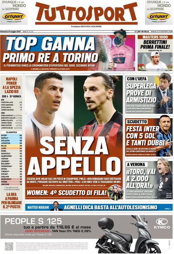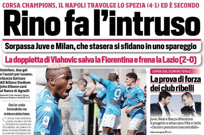 LE PRIME PAGINE DEI QUOTIDIANI SPORTIVI