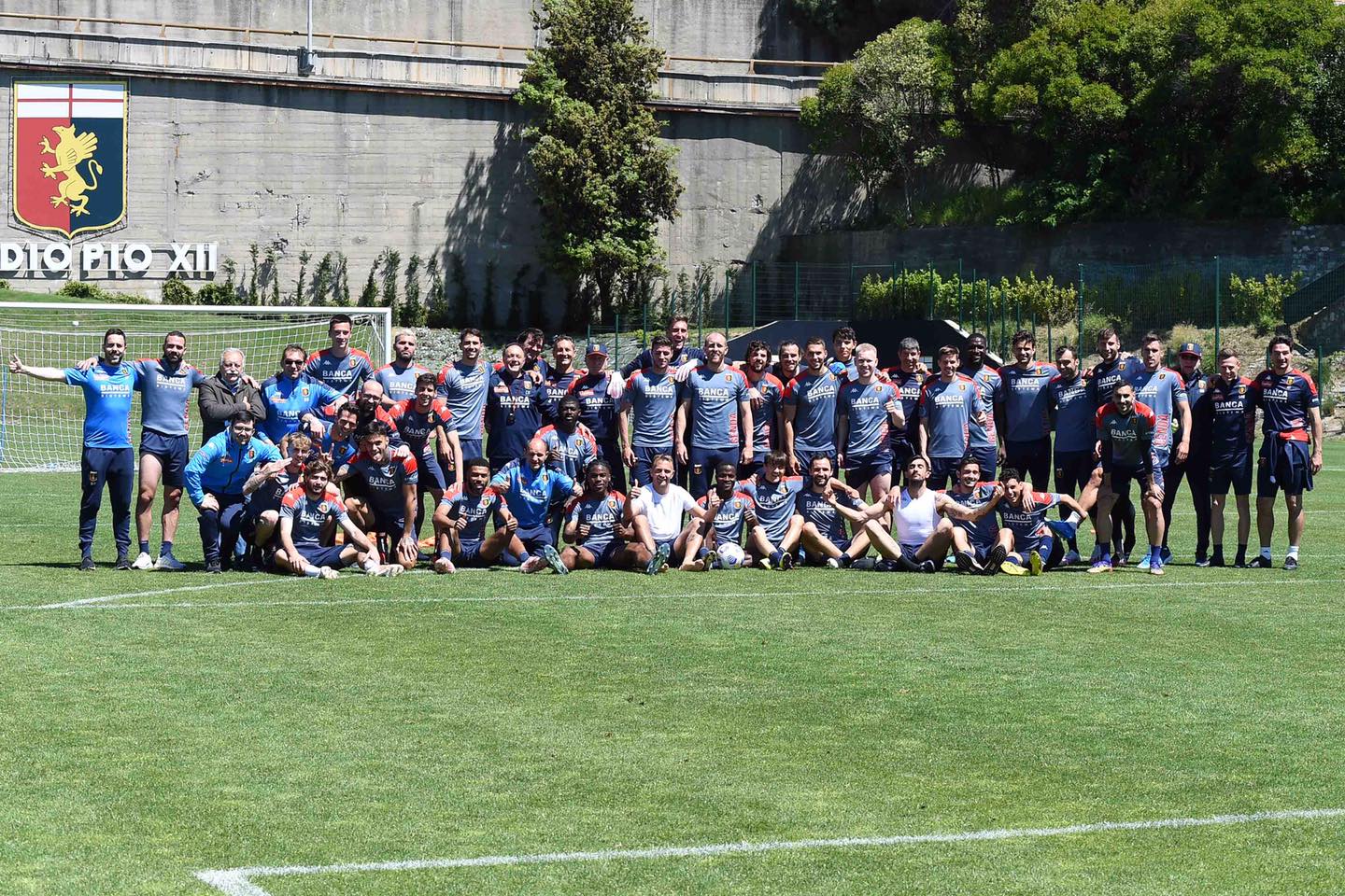 Il Genoa si è ritrovato quest’oggi al Signorini di Pegli per uno fra gli ultimi allenamenti di stagione. Lo ha fatto fra scherzi, sorrisi e foto di squadra. Perin sfida sui social Zappacosta in una gara di precisione sui tiri dalla distanza, vinta dal portiere: “Zappa prepara il bancomat” perché bisogna pagare, ha scherzato Mattia. A fine seduta, tutti abbracciati per una foto collettiva: “We are Genoa” il commento del capitano Criscito su Instagram. Presenti diversi ragazzi della Primavera, da Gjini per a Yayah Kallon, squalificato in campionato Primavera e convocabile per la trasferta alla Sardegna Arena. C’è anche Gabriel Charpentier, reduce dal doppio prestito ad Ascoli e Reggio Calabria (nella foto sottostante, in basso a sinistra). Mister Ballardini, con una mano sulla spalla di Strootman, lascia il primo piano al resto della squadra.