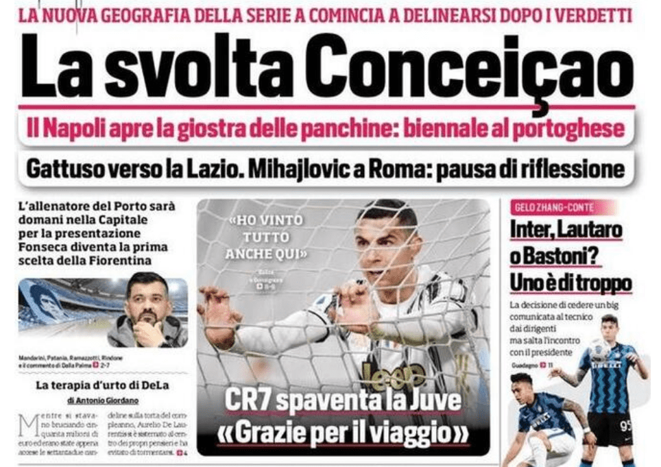 LE PRIME PAGINE DEI QUOTIDIANI SPORTIVI