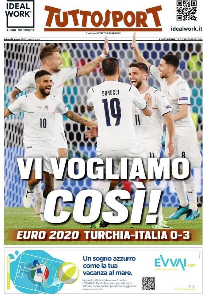 GAZZETTA DELLO SPORT – Continua la celebrazione del 3-0 all’esordio contro la Turchia anche sulla prima pagina della rosea, che titola “Ridi Italia“, pubblica l’esultanza di Ciro Immobile e Lorenzo Insigne e parla di “partenza col botto“. Poi all’interno del giornale si trovano i primi riferimentI al Genoa in un articolo dedicato alla Juventus dal titolo “giovani da mercato“. Non a caso si parla di Rovella, che la Juventus vorrebbe portare a Torino già questa estate (ci sarebbe già stato un incontro tra l’agente Giuseppe Riso e la società bianconera, che avrebbe in quella sede fatto sapere che il giocatore non verrebbe usato come contropartita per arrivare a Locatelli). Si parla anche di “cavalli di ritorno” e il riferimento, questa volta, è a Mattia Perin, che avrebbe comunque già manifestato la sua intenzione di tornare al Genoa. Un nuovo trasferimento per la Juventus (Allegri, secondo quanto si legge, non avrebbe problemi a dare la casacca di vice Sczcesny a Perin) coinciderebbe con una cessione a titolo definitivo.