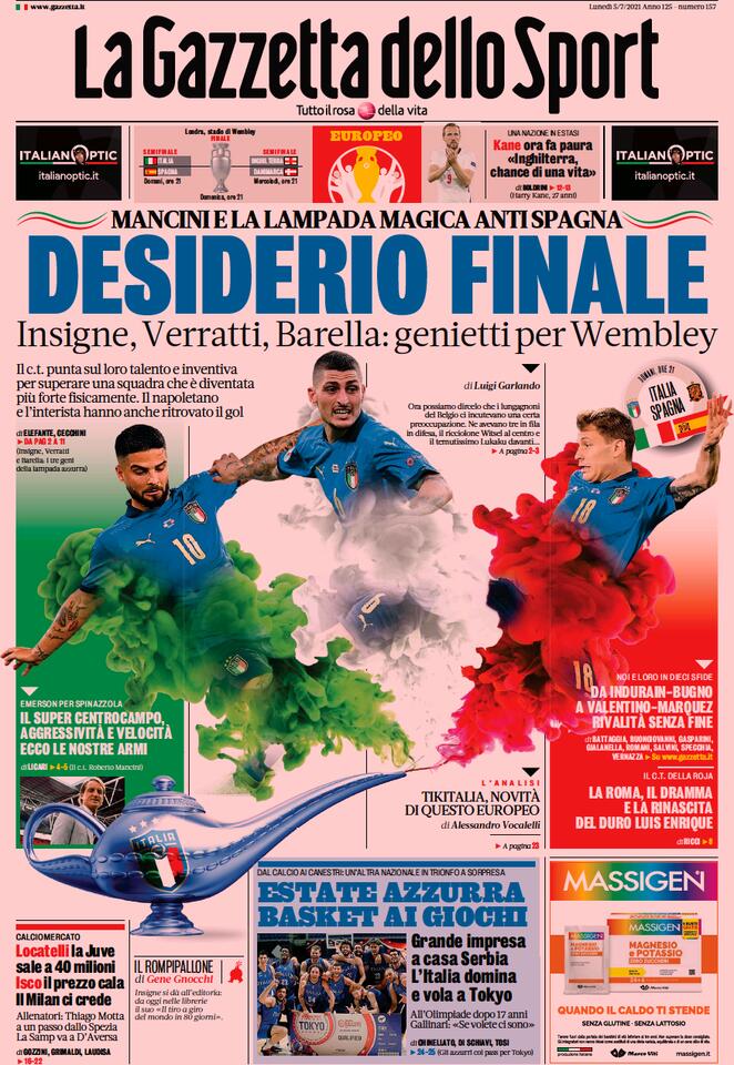 LE PRIME PAGINE DEI QUOTIDIANI SPORTIVI