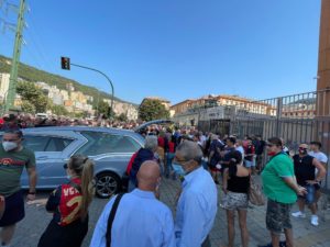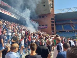 Sono all’incirca mille i tifosi che si sono recati questa mattina nei pressi dello stadio Luigi Ferraris per un ultimo saluto a Roberto Scotto, storico volto della tifoseria genoana scomparso nella giornata di giovedì. Presenti anche il vice presidente Gianni Blondet così come delegazioni di altre tifoserie. Tanti applausi e cori in memoria Scotto, ricordato con messaggi di cordoglio in varie parti dell’Italia, da Perugia a Reggio-Emilia, da Cosenza fino a Torino. “Ciao Roberto, amico genoano” è la scritta apparsa questa mattina al Filadelfia a firma della Curva Maratona.