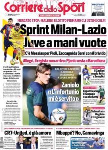 CORRIERE DELLO SPORT – Nell’evidenziare che oggi, entro la mezzanotte, andranno consegnate le liste dei 25 per la Serie A e per l’Europa da parte dei venti club del campionato, il Corriere dello Sport ripercorre minuto per minuto l’ultima giornata di mercato. Il Genoa ha il proprio spazio non soltanto per il tris di ufficialità di Maksimovic, Caicedo e Tourè, ma anche per l’innesto al fotofinish di Fares. Genoa che, secondo le tabelle del CorSport, chiuderebbe anche in attivo di circa 3.7 milioni di euro questa sessione di mercato nel suo bilancio fra entrate e uscite. Sessione con gli investimenti più bassi degli ultimi 6/7 anni.