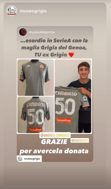 Un percorso atipico, con una lunga serie di prestiti in giro per diverse squadre della Penisola, che ha permesso a Cambiaso di maturare e fare la tanto famosa “gavetta” prima di esordire nel campionato che più gli spetta e con la maglia della squadra di cui è tifoso. E proprio la maglia indossata a San Siro, in Inter-Genoa, è stata donata al Museo Grigio dell’Alessandria. Ad annunciarlo via Instagram lo stesso museo.