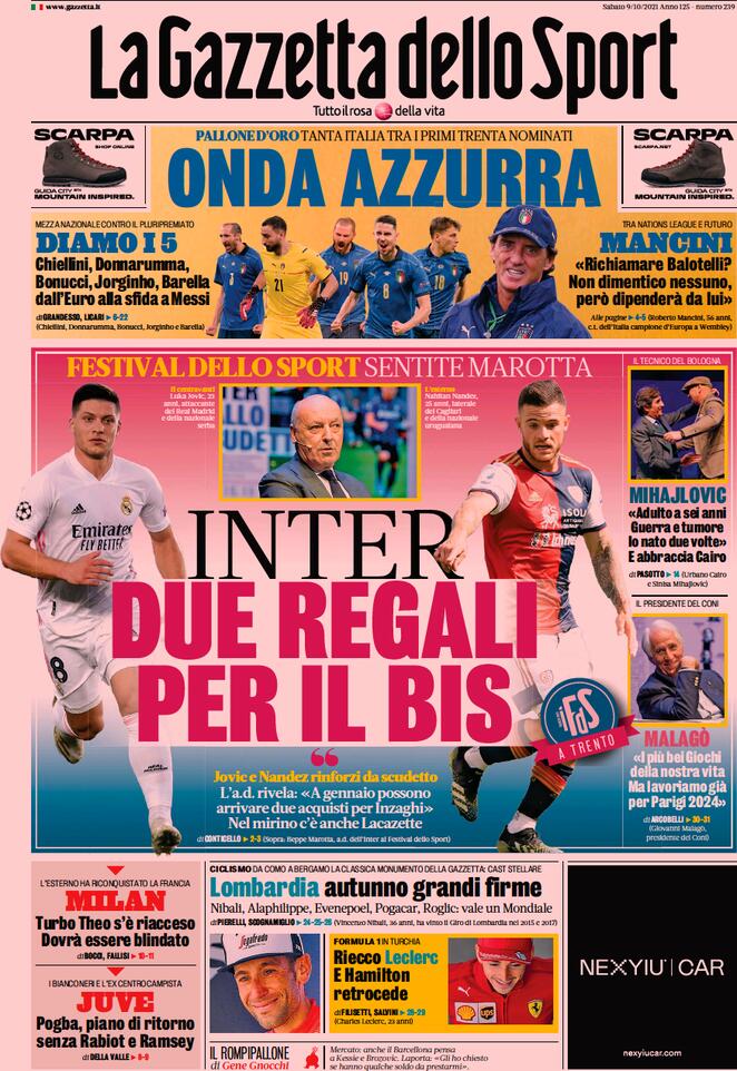 LE PRIME PAGINE DEI QUOTIDIANI SPORTIVI