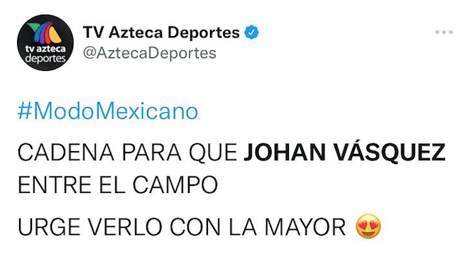 Johan Vasquez si prepara al ritorno in Italia. Il difensore non è sceso in campo neanche nella partita vinta per 0-2 dal Messico a El Salvador: l’esclusione da parte del “Tata” Martino, peraltro con qualche compagno di reparto ancora incerottato dopo la precedente partita (vinta per 3-0 con l’Honduras), ha fatto discutere su diverse emittenti locali nel post-partita. A lasciare stupiti diversi addetti ai lavori è stato soprattutto il mancato ingresso del difensore del Genoa poco dopo l’ora di gioco, quando la nazionale messicana è rimasta in 10 uomini per l’espulsione del difensore Araujo. La nota emittente Azteca Deportes, con milioni di followers sui social e che nei giorni scorsi ha intervistato proprio Vasquez, durante la partita ha lanciato una “catena” per proporre l’ingresso in campo del 22enne. Cosa che, come noto, non è accaduta.