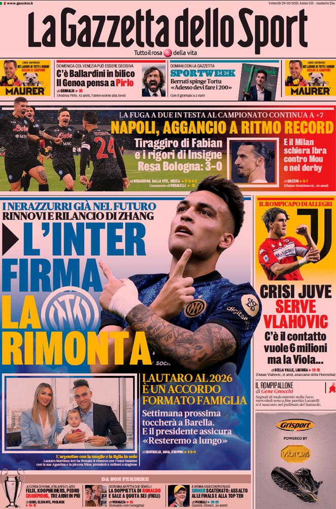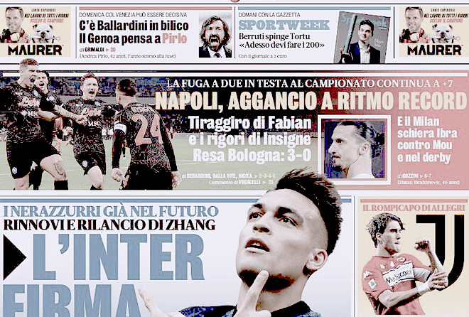 LE PRIME PAGINE DEI QUOTIDIANI SPORTIVI