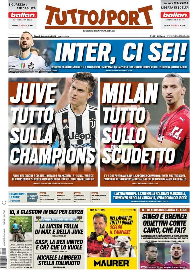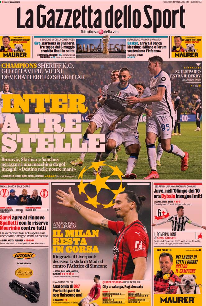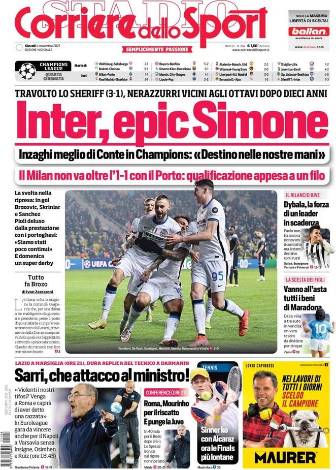 LE PRIME PAGINE DEI QUOTIDIANI SPORTIVI