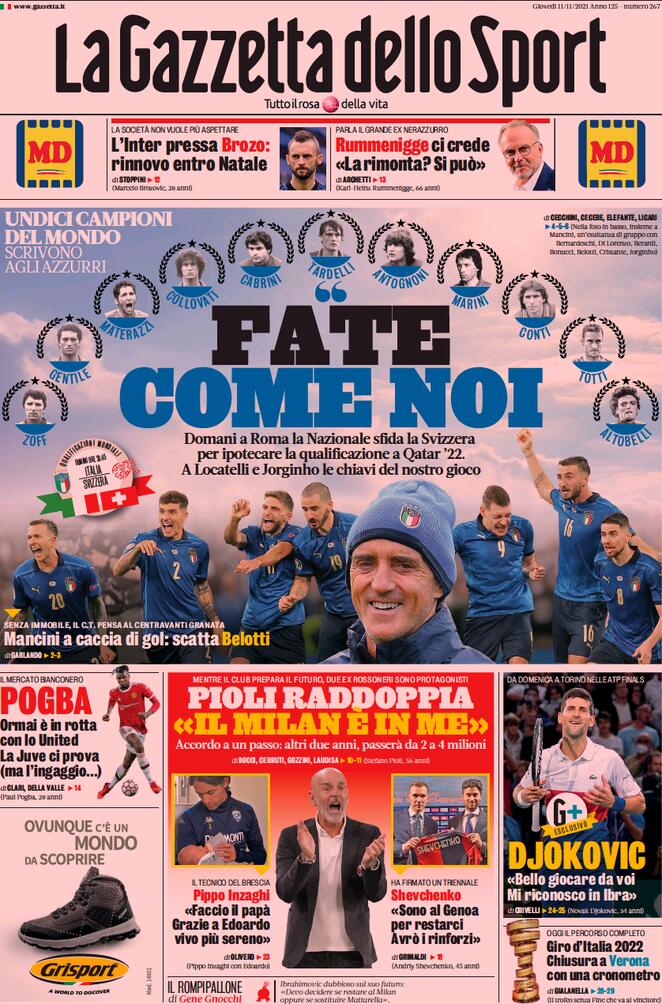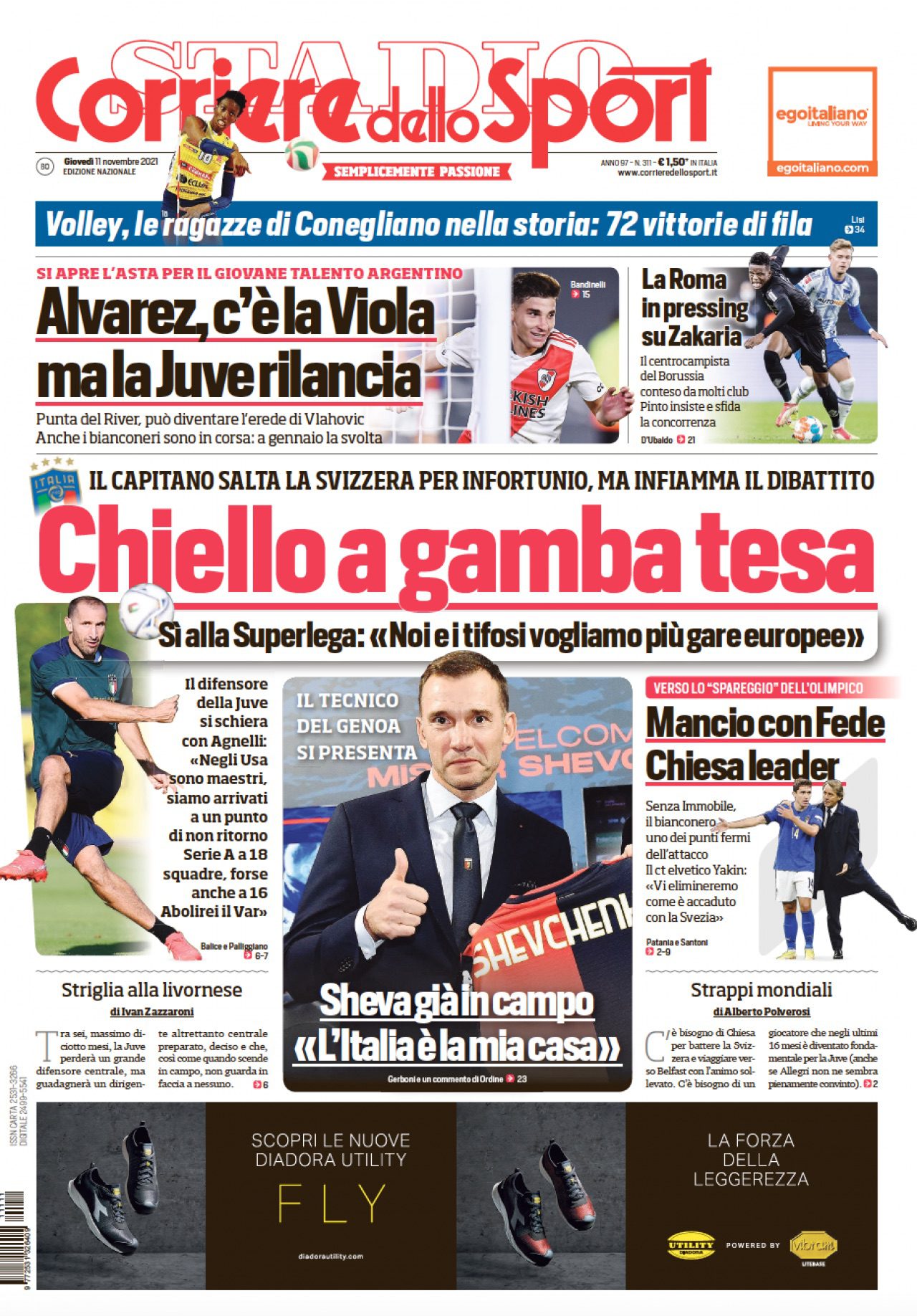 GAZZETTA DELLO SPORT – Il quotidiano in rosa parla di “Progetto Sheva” e delle prime parole del nuovo tecnico rossoblu che spiega di voler rimanere a lungo nel Genoa avendo sposato un progetto che già da gennaio prevederà rinforzi per la rosa a disposizione. “Saremo aggressivi con un uomo in più: il pubblico“. Un approfondimento a parte riguarderà lo staff tecnico a disposizione del mister ucraino (clicca QUI per saperne di più) e un’intervista esclusiva a Filippo Inzaghi, oggi tecnico del Brescia, vede anche un passaggio legato all’approdo di Shevchenko al Genoa. “Shevchenko di cosa è capace? Di salvare il Genoa: gli auguro ogni bene. Gli ho mandato un messaggio. Ci siamo visti in vacanza in Puglia, è un grande amico e spero faccia ottime cose“.