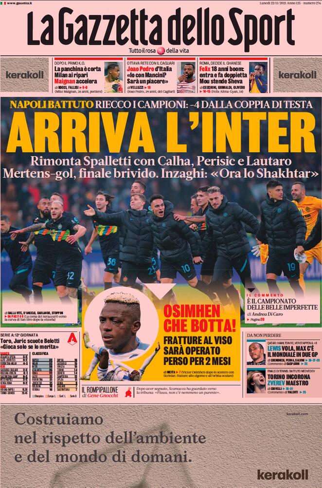 LE PRIME PAGINE DEI QUOTIDIANI SPORTIVI