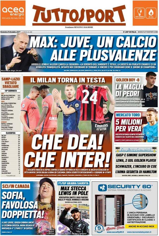 TUTTOSPORT – Allegri dà un calcio alle plusvalenze e carica la squadra in vista della partita contro i rossoblu: l’appuntamento con la squadra di Sheva non sarà glamour come un big match di Champions League e proprio per questo motivo il tecnico dei bianconeri sta facendo di tutto per tenere sulla corda i suoi giocatori. Il presente del Genoa, invece, per ora è cupo e non porta niente di buono. L’avversario peggiore? Forse sono gli infortuni. Presto gli esami per Criscito e Destro, con la speranza di poterli rimettere in moto entrambi in vista del derby.