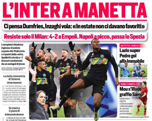 LA GAZZETTA DELLO SPORT – Il quotidiano in rosa parla di Genoa in relazione all’inchiesta plusvalenze che sta riguardando l’Inter, specialmente per quanto riguarda le operazioni di “riacquisto” che il club nerazzurro avrebbe fatto con giocatori quali gli ex rossoblu Radu e Pinamonti. Anche qui, la rosea accenna al rinvio di Genoa-Roma del campionato Primavera a causa di casi di positività al Covid tra le file dei capitolini.