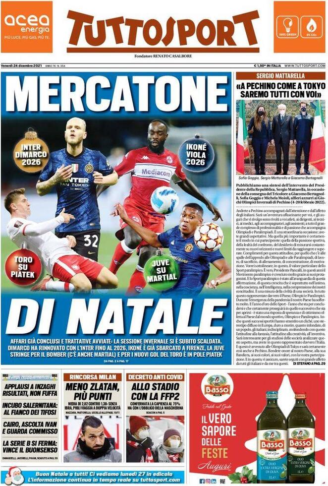 IL SECOLO XIX – Spors in pressing per avere subito Younes e Strand Larsen. L’Atalanta spara alto per Miranchuk: il russo viene valutato circa 15 milioni di euro, un investimento non da poco per il quale sono in corso valutazioni da parte del nuovo general manager. Vecino non appare convinto dall’idea di andare al Genoa, Pjanic con tutta probabilità resterà al Besiktas, Orsolini piace ma non è un obiettivo facile da raggiungere, il nome nuovo è Pussetto dell’Udinese. Probabile l’arrivo di qualche giocatore dalla Spagna, dove è rientrato Blazquez per le feste natalizie: il dirigente sta tenendo i contatti con diversi club della Liga, pronti ad offrire giocatori. In uscita, Caicedo conteso tra Inter e Fiorentina. Fares tra Sassuolo e Torino. Criscito ha ricevuto e rifiutato un’offerta da Toronto per concludere la sua carriera nella MLS americana: la sua intenzione è restare in rossoblu e della stessa idea è anche Shevchenko, rientrato a casa a Londra per trascorrere il Natale in famiglia. A gennaio, sarà ufficializzato il nuovo direttore finanziario che non sarà Alessandro Galleni. Quest’ultimo, secondo il Decimonono, avrà un ruolo maggiormente dedicato al calciomercato. Menzione poi per la maglia di Biraschi in regalo al baby tifoso genoano (clicca qui).