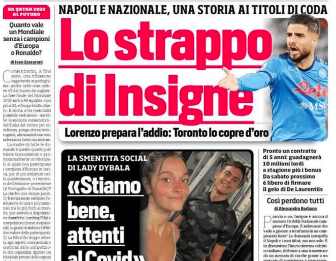 GAZZETTA DELLO SPORT – Il quotidiano in rosa parla di “mercato caldo” e ritorna sui nomi di Piccoli e Younes, per i quali ogni riserva verrò sciolta a breve. L’Eintracht sta valutando se cedere a titolo definitivo Younes, mentre per Piccoli si dovrebbe trattare di un prestito secco sino a fine stagione. “Più complessa” l’operazione Miranchuk, scrive il quotidiano. Anche sulla rosea spazio ai casi Covid interni al Genoa con Criscito e Shevchenko costretti in quarantena nel giorno della ripresa degli allenamenti.