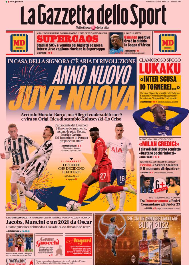 LE PRIME PAGINE DEI QUOTIDIANI SPORTIVI