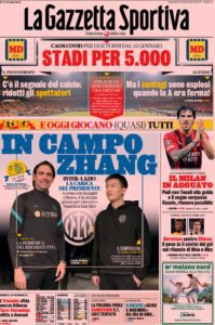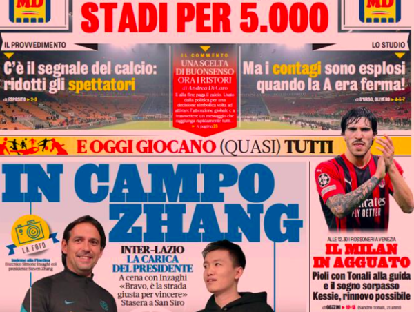 GAZZETTA DELLO SPORT – La rosea riparte dalla riduzione a 5mila tifosi della capienza negli stadi e lo fa raccontando alcuni passaggi dell’Assemblea di Lega Serie A, dove i pareri sono stati differenti. Diversi presidenti, tra cui il rossoblu Alberto Zangrillo, avrebbero evidenziato come “non ci sia dietro a certe pressioni un’evidenza scientifica e in molti hanno parlato di demagogia politica“, è quanto riporta la Gazzetta dello Sport. Si passa poi a parlare della sfida tra Genoa e Spezia, vero e proprio scontro salvezza. “Shevchenko-Motta, la sfida da brividi di due vincitori della Champions” è quanto titola il qitidiano in rosa ripercorrendo le parole della vigilia e inserendovi qua e là riferimenti al mercato, in particolare all’innesto divenuto ufficiale di Yeboah (cessione record per lo Sturm Graz). Le probabili formazioni confermano le sensazioni della vigilia: davanti potrebbero partire contemporaneamente Caicedo e Destro, come avvenne nel finale della sfida di andata al Picco. Piccola chiosa finale di mercato: bloccato momentaneamente il passaggio di Fares al Torino. “Se ne riparlerà da domani“. Domani incontro Genoa-Cosenza per la cessione di Bianchi.