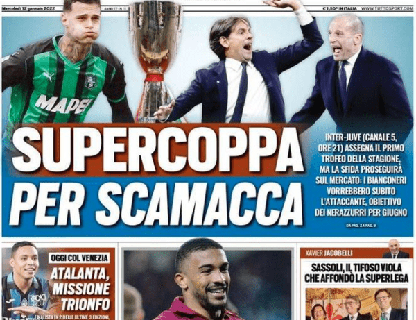 TUTTOSPORT – Sheva, che ha perso Cambiaso e rischia l’esonero, ritrova 19 anni dopo i rossoneri nella stessa manifestazione che ha deciso con una rete in finale nel 2003. Prosegue una fase di riflessione sulla sua posizione, tanto che potrebbe proseguire fino alla sfida di lunedì. Con Vasquez squalificato contro la viola e Criscito non ancora al meglio, ecco che diventa fondamentale la figura di Fares (in un articolo successivo viene invece spiegato come l’arrivo di Calafiori possa liberare il laterale, direzione Torino), che potrebbe giocare sia domani che lunedì sera. Possibile l’esordio per Yeboah, così come un maggior minutaggio per Caicedo e Rovella. La Salernitana per salvarsi, oltre ad aver chiuso per Sabatini come direttore sportivo ed aver contattato Gattuso per la panchina, pensa ai genoani Masiello e Radovanovic per rinforzarsi in difesa.