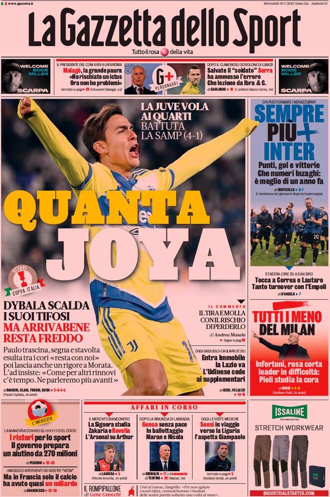 LE PRIME PAGINE DEI QUOTIDIANI SPORTIVI
