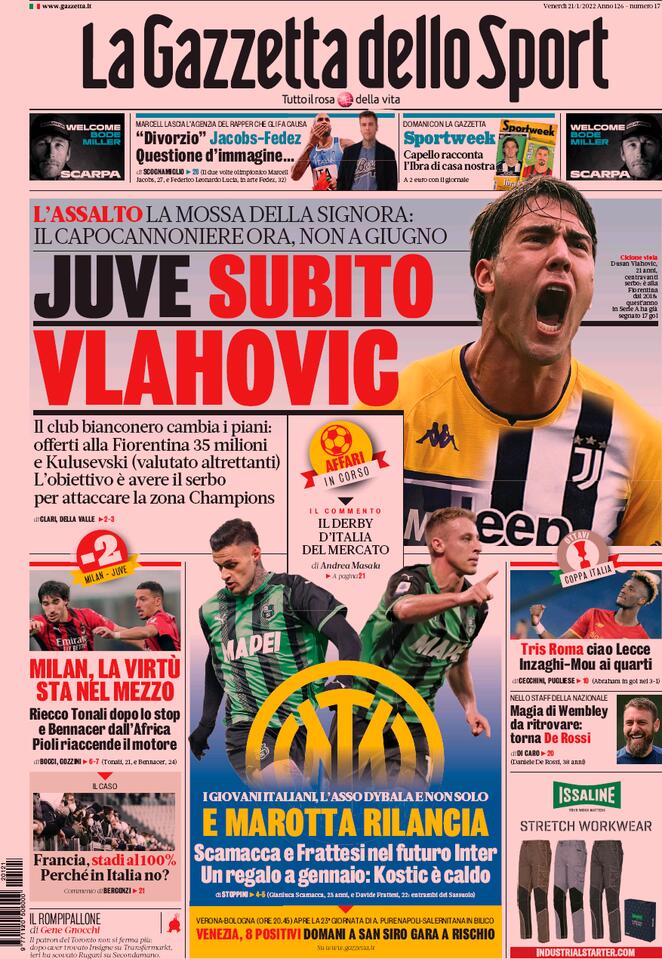 LE PRIME PAGINE DEI QUOTIDIANI SPORTIVI