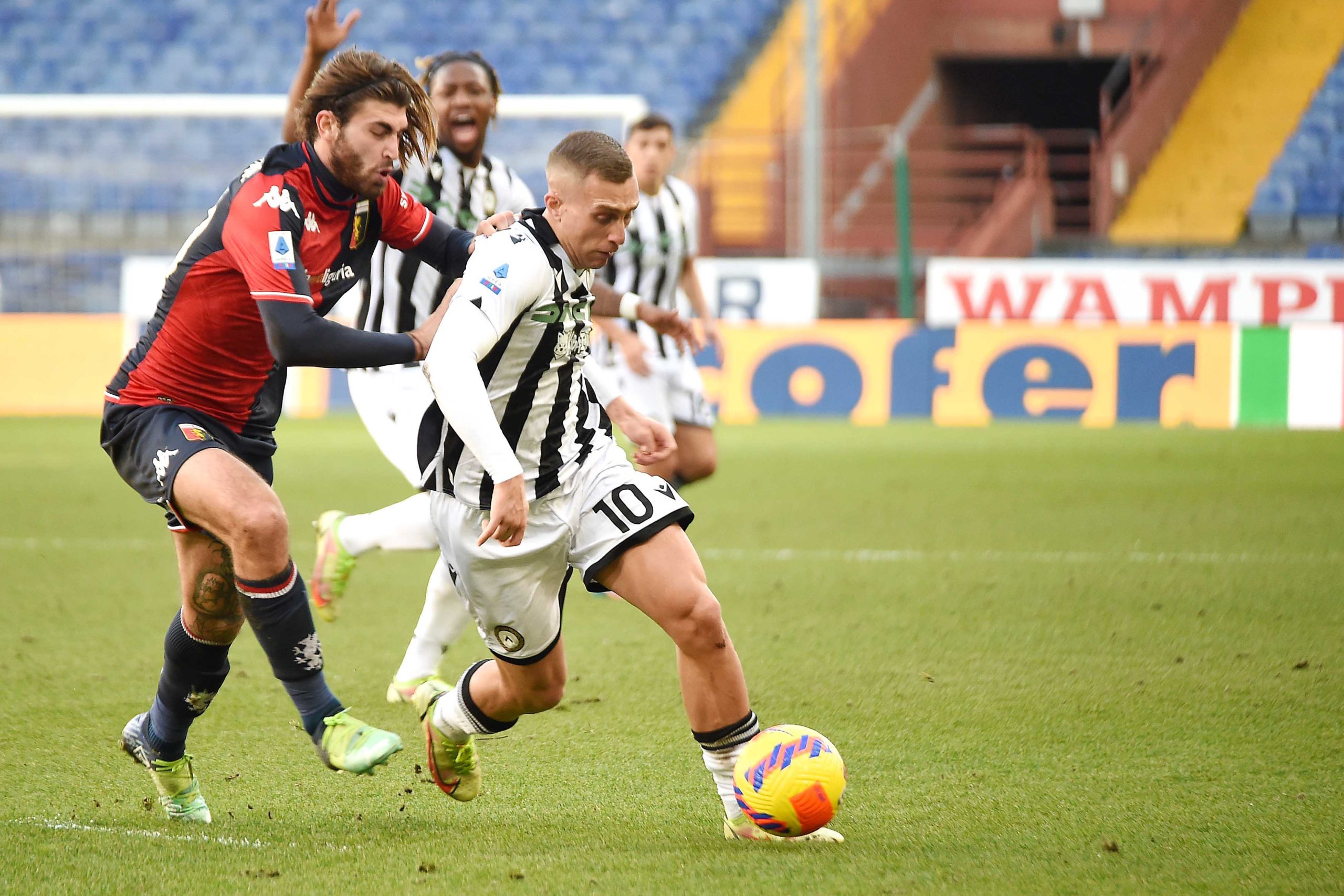 15′ – Chance Genoa, ma stop maldestro di Yeboah, che aveva ricevuto il pallone da Sturaro, che prima aveva strappato l’ennesimo pallone a centrocampo ai portatori di palla friulani. Stop sbagliato tutto solo davanti a Silvestri, che riesce a farla sua senza problemi. Ma è un Genoa totalmente diverso nell’atteggiamento: piuttosto che aspettare col pallone fra i piedi e rischiare di perdere il posse, si ricorre spesso al lancio sui centravanti. Poi sempre doppi o tripli raddoppi di marcatura e la posizione di Portanova come jolly a marcare Walace.