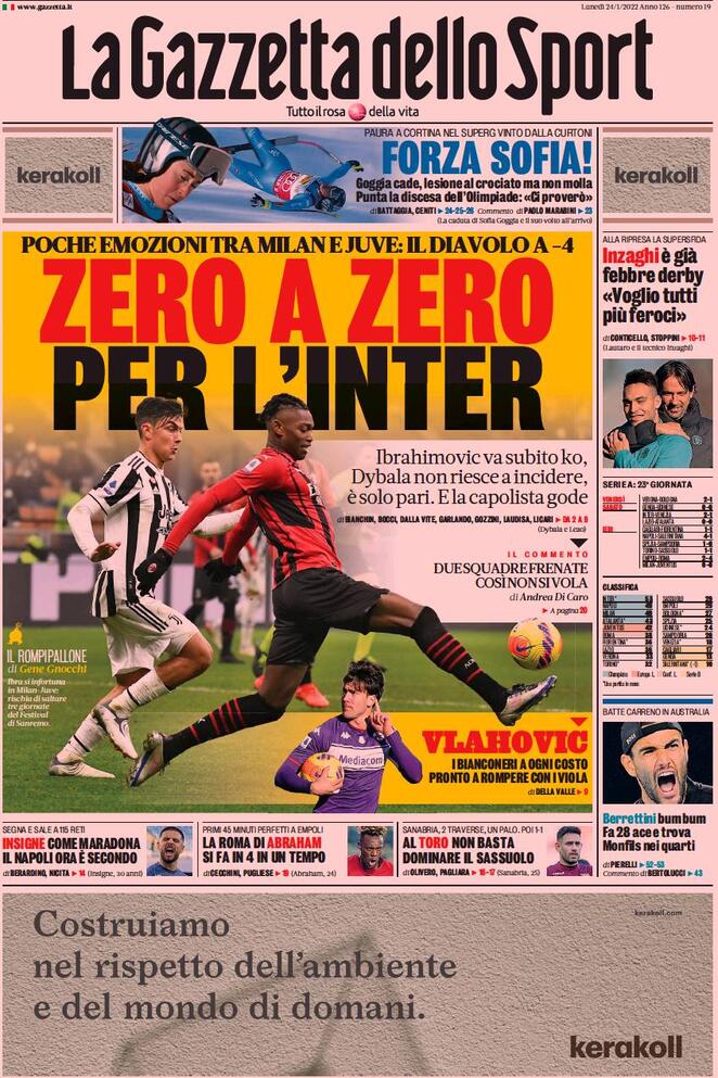 LE PRIME PAGINE DEI QUOTIDIANI SPORTIVI
