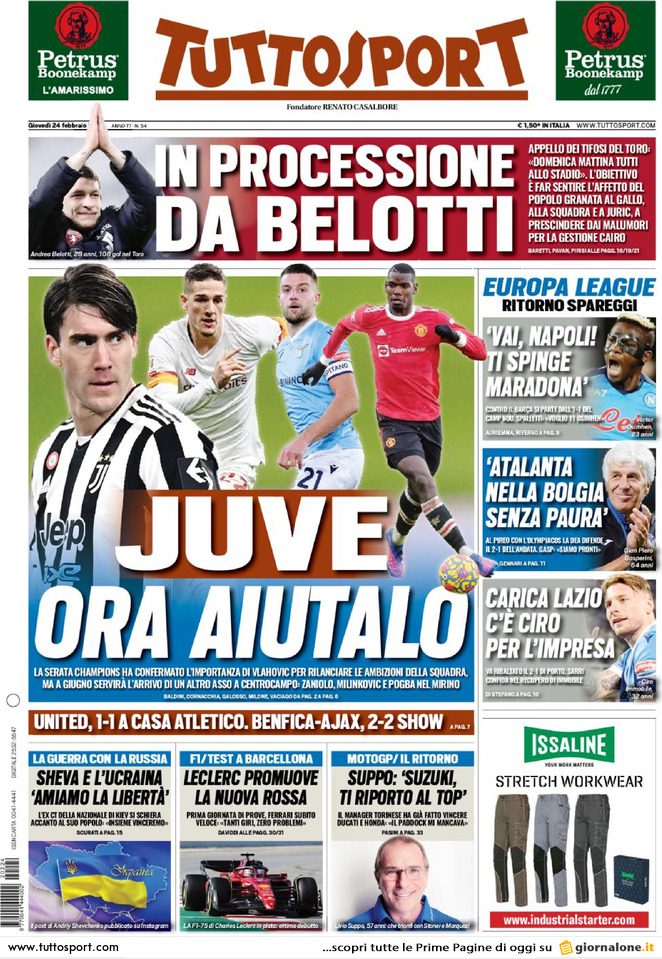 SECOLO XIX – “L’addio del capitano” è il titolo proposto dal Decimonono, che parla di un’offerta sul tavolo per Domenico Criscito da circa due milioni e mezzo a stagione per i prossimi due anni e di un Genoa che si rifugia nell’espressione “sta a lui decidere“. Le prossime settimane diranno di più sul futuro del capitano rossoblu, che in marzo potrebbe già trasferirsi in Canada. Ampio spazio anche alla notizia della nascita del 777 Football Group, annunciata da Josh Wander in un’intervista ai canali ufficiali del Vasco da Gama. “Stiamo costruendo una strategia di acquisto di diversi club, che chiameremo 777 Football Group. Si concentrerà su mercati chiave, con tradizioni ricche e profonde, identità, connessioni con tifosi che riteniamo sensate. Svilupperemo talenti, svilupperemo settori giovanili forti, utilizzeremo analisi innovative dei dati calcistici che ci aiutino a prendere decisioni“.