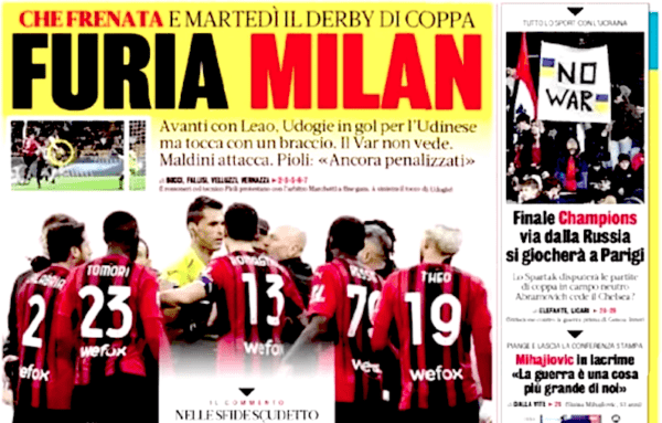 CORRIERE DELLO SPORT – Tutto fermo, anche l’Inter: la squadra di Simone Inzaghi, condizionata psicologicamente dal momento no, non riesce ad approfittare dello stop milanista contro l’Udinese, così sarà il Napoli domani ad avere un’occasione per l’aggancio in vetta alla classifica. Viene sottolineata la bravura dei rossoblu, al 5° pareggio di fila. Riescono a costruire qualche ripartenza pericolosa, pressano per 90′ Brozovic, lottano a dispetto di una salvezza che rimane lontana. Serata tranquilla per Chiffi: cartellini ok. Blessin vede errori e cose buone, non guarisce dalla “pareggite” ma conquista un punto d’oro. Il migliore in campo è Østigård, premiato con il voto 7.