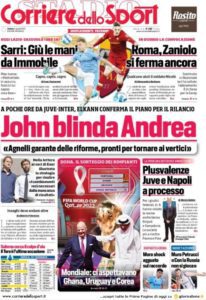 GAZZETTA DELLO SPORT – Mentre all’interno di Sportweek viene proposta una intervista a mister Alexander Blessin dal titolo “la rivoluzione del sorriso“, in prima pagina si trova già un rimando alla questione plusvalenze e al deferimento di molte società, tra cui il Genoa. Viene subito sottolineato come a rischiare saranno i dirigenti coinvolti nell’inchiesta. I club, dal canto loro, dovrebbero rischiare solamente delle ammende per aver violato i comma 1 e comma 2 dell’Articolo 31 del Codice di Giustizia Sportiva. Differente la situazione in casa Parma e Pisa: i due club rischierebbero addirittura penalizzazione oppure esclusione dal campionato. Nelle’elenco dei deferimenti riportato dalla Gazzetta dello Sport compaiono, a pagina 9, quattro nomi in casa rossoblu: Enrico Preziosi, Alessandro Zarbano, Gianni Blondet e Diodato Abagnara. Poi la rosea torna anche sul fatto che questa mattina i tifosi supporteranno la squadra a Pegli, nel giorno della riapertura al pubblico del centro sportivo Signorini dopo quasi quattro anni. “L’effetto Blessin non si ferma mai, i tifosi del Genoa all’allenamento” è il titolo scelto.