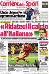 CORRIERE DELLO SPORT – Una sola menzione relativa al Genoa ed è quella legata al nome di Andrea Cambiaso, che ancora deve rinnovare coi rossoblu e che continua a essere accostato ad altri club. Questa mattina si torna a parlare dell’Inter che lo avrebbe “prenotato” poiché piace in un’ottica di “investimento“.
