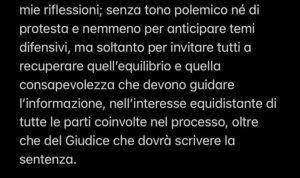 Credo, di contro che il rispetto per chi si assume vittima sia sacrosanto, ma che lo debba essere anche per chi è presuntivamente non colpevole per dettato costituzionale, soprattutto se minore all’epoca del fatto. Ora, che nel nostro Paese si sia perso da tempo il senso dell’equilibrio è evidente a tutti, ma in alcuni casi si passa il limite quando si finisce per orientare i giudizi, avvelenando il clima attorno ad una vicenda processuale per condizionarne l’esito, laddove è dimostrato che i mass media possano incidere, magari in via subliminale, sulla sorte delle decisioni giudiziarie.