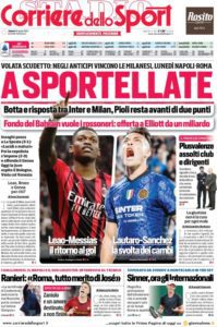 GAZZETTA DELLO SPORT – Il quotidiano in rosa evidenzia questa mattina la vittoria del Milan per 2-0 contro il Genoa, successo che riporta i rossoneri in testa alla classifica. “Il Genoa non ce la fa ad andare oltre l’aggressività di fondo e la durezza al contrasto. Blessin ha incassato la terza sconfitta consecutiva e il problema vero è l’incapacità offensiva dei rossoblu“. Il tecnico rossoblu Blessin “non vuole arrendersi”, specifica la Gazzetta dello Sport, ed evidenzia il fatto che sia rimasto positivo anche dopo il terzo KO di fila. “Per salvarci è giusto andare avanti così, resto positivo per il nostro futuro” si legge in un breve trafiletto dedicato al Genoa.