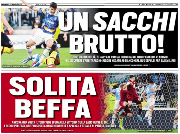 In un approfondimento a parte si parla di pazienza esaurita da parte del Genoa e di mister Blessin per i “troppi errori arbitrali” che hanno comunque condizionato, al di là delle altre problematiche che attanagliano questa squadra (5 reti segnate negli ultimi 4 mesi, ad esempio), la classifica rossoblu. Breve trafiletto legato alla contestazione dei tifosi del Red Star FC, squadra parigina oggi in terza serie, verso i 777 Partners: la holding di Miami è in trattativa per acquisire la terza squadra della capitale francese. Ma i tifosi del Red Star hanno esposto uno striscione con scritto “non siete in benvenuti“, costringendo peraltro alla sospensione della gara col Sete.