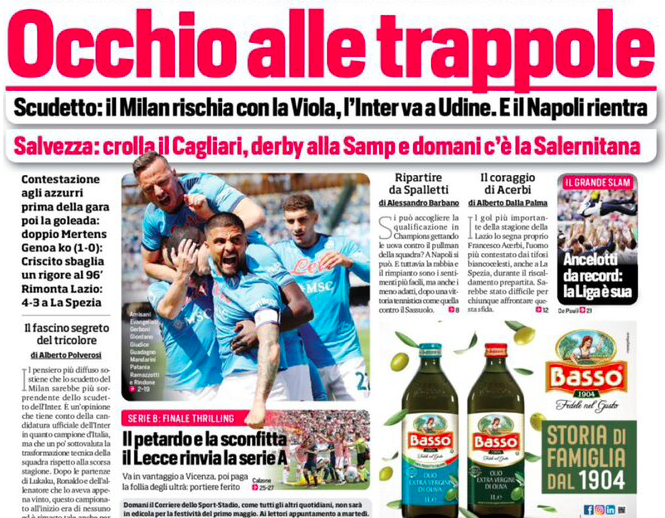 TUTTOSPORT – “Sì, è Samparadiso” titola Tuttosport, che prosegue nel sottotitolo: “Al 95′ Criscito si fa parare un rigore: per il Genoa lo spettro della Serie B si avvicina“. Ma Blessin assicura: “ci sono ancora tre gare e daremo tutto. Ci crediamo ancora. Arrendermi non è nella mia natura“. Anche qui, come su tutti gli altri quotidiani, la sottolineatura è per il come abbia comunque vinto Genova col tifo e lo spettacolo offerto da entrambe le Gradinate.