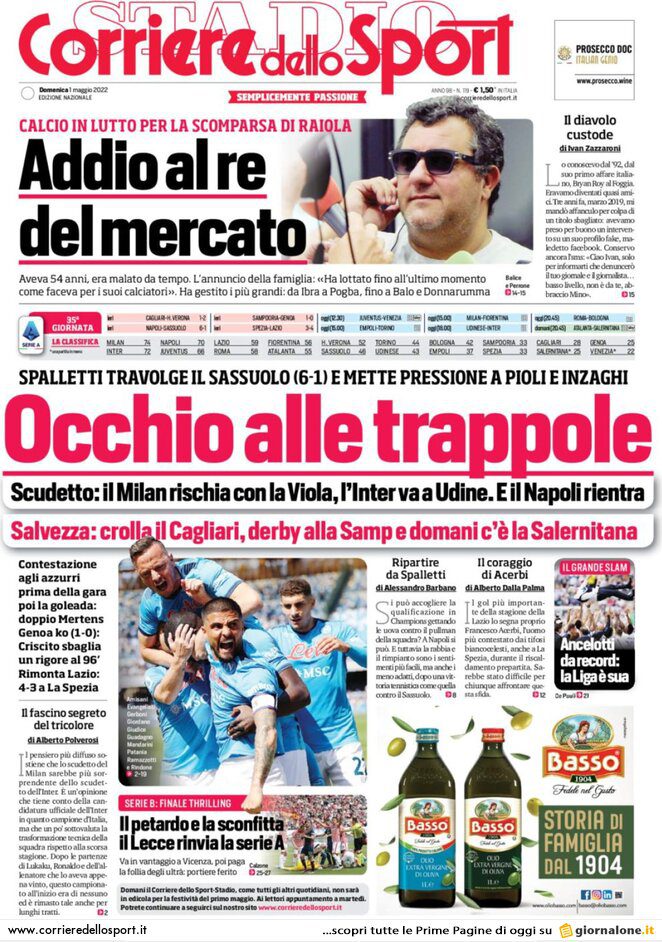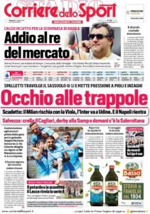 CORRIERE DELLO SPORT – Il Corriere dello Sport introduce alla sconfitta nel derby da parte del Genoa parlando della parata di Audero come della “parata della carriera“. “Giampaolo fa festa, Criscito in lacrime” è quanto scritto nel titolo dell’articolo che sintetizza quanto accaduto sul terreno di gioco del Ferraris, dove al 96′ sarebbe potuto maturare un pareggio, ma Criscito avrebbe sbagliato un pesantissimo rigore. Considerata “ineccepibile” la on field review consigliata da Irrati all’arbitro Maresca.