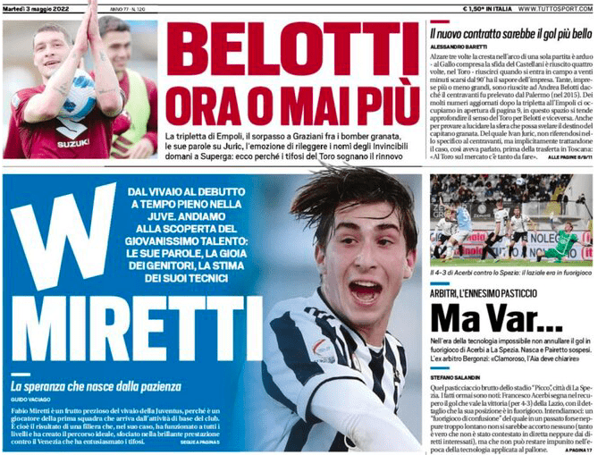 TUTTOSPORT – Il quotidiano sportivo piemontese parla della “salvezza più pazza“. Il riferimento è sempre a quelle che sono le mosse delle formazioni impegnate nella lotta salvezza. “Il Genoa spera in una Juve distratta dalla Coppa Italia” si legge nel sottotitolo, dopodiché vengono proposti tutti i diversi calendari delle squadre impegnate nel cercare di mantenere la categoria.