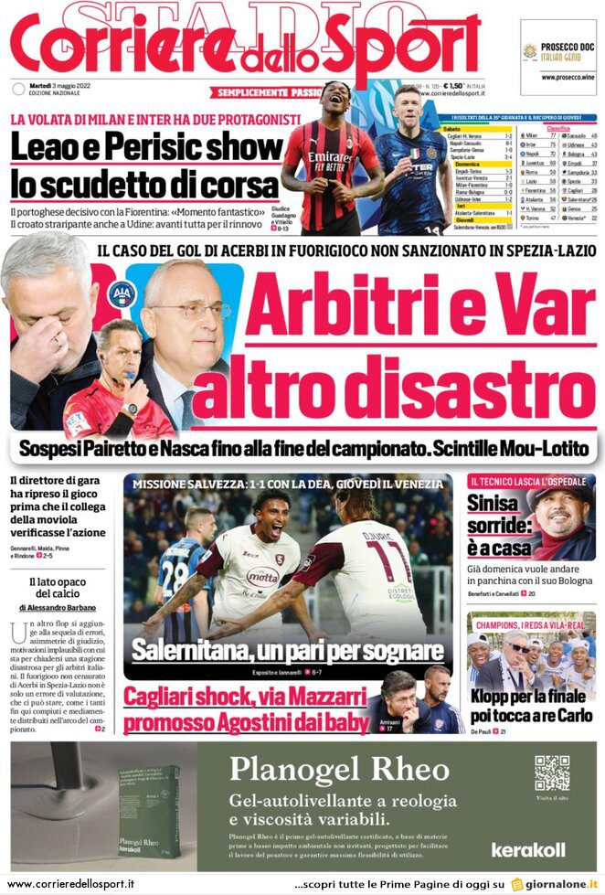 GAZZETTA DELLO SPORT – Il quotidiano in rosa parla delle squadre in lotta per la salvezza sottolineando il punto conquistato dalla Salernitana in casa dell’Atalanta ed evidenziando come tutte le squadre chiamate a mantenere la categoria stiano lottando, la Salernitana come il Genoa pur palesando, la formazione di Nicola, “più idee e qualità di tutte le altre“. Si parla anche della “mossa disperata” del Cagliari, quella di esonerare Mazzarri e mettere Agostini, tecnico della Primavera, alla guida della prima squadra. Nessun approfondimento specifico sul Genoa.