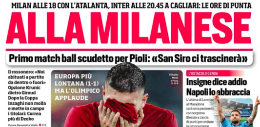 GLI APPROFONDIMENTI SUL GENOA CORRIERE DELLO SPORT – “Lorenzo, baciala ancora” è il titolo col quale il Corriere dello Sport anticipa la sfida di questo pomeriggio (ore 15) tra Napoli e Genoa. Sarà “una marea di emozioni” per l’attaccante partenopeo Insigne, che da luglio volerà in Canada per iniziare la sua nuova avventura in MLS. Per affrontare uno … Leggi tutto Rassegna Stampa del 15 Maggio, le probabili formazioni di Napoli-Genoa. Amiri a rischio?