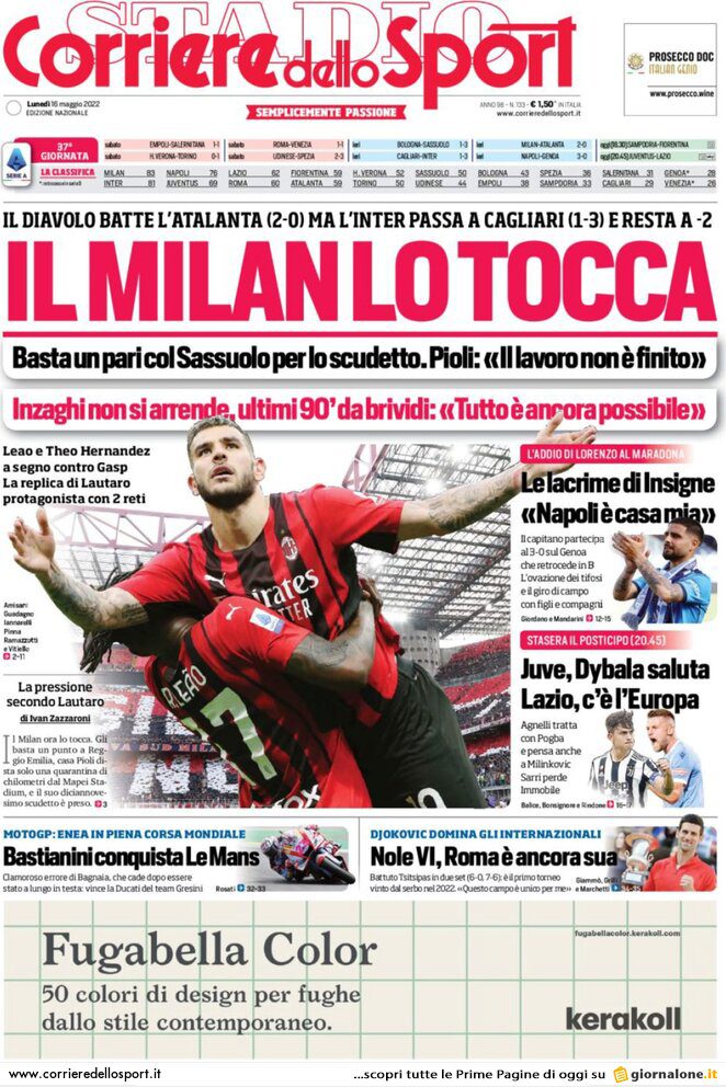 “Adesso tutti sotto esame, a partire da Spors” altra sottolineatura del quotidiano, che mette in parallelo le parole di Spors nel pre-partita, che avevano confermato Blessin in ogni caso, e quelle di Zangrillo, ce nel dopogara avrebbe risposto a domanda di DAZN: “Faccio un lavoro serio per cui queste deduzioni, che mi fanno sorridere, le lascio a chi le ha dette. Ora dobbiamo guardare al presente, abbiamo un progetto che ho condiviso a novembre 2021 con Josh Wander. A quello io mi richiamo. Non è questione di chi verrà confermato, di chi non ci sarà più, ma è questione di fare un progetto, quello a cui noi ci siamo richiamati sei mesi fa. Dobbiamo onorarlo“. Nel frattempo, anche il Genoa Primavera va ai playout, ancora una volta contro il Napoli.
