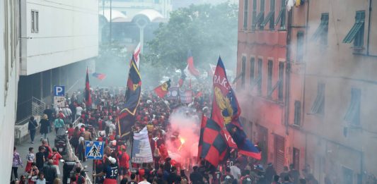 Genoa, il corteo dei tifosi rossoblu verso piazzale Kennedy – FOTO e VIDEO