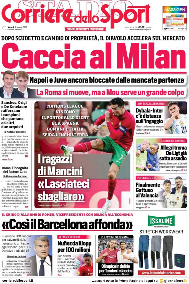 TUTTOSPORT – “Il caso Cambiaso inquieta il Genoa” è quanto titola Tuttosport questa mattina, in realtà lasciando con questo titolo solamente un riepilogo generale legato ai possibili movimenti in uscita dal Grifone, da Caicedo a Vasquez. Si accenna anche all’ingresso di Mladen Sormaz nel network 777 Partners. La squadra rossoblu tornerà a lavorare da fine giugno coi primi test atletici.