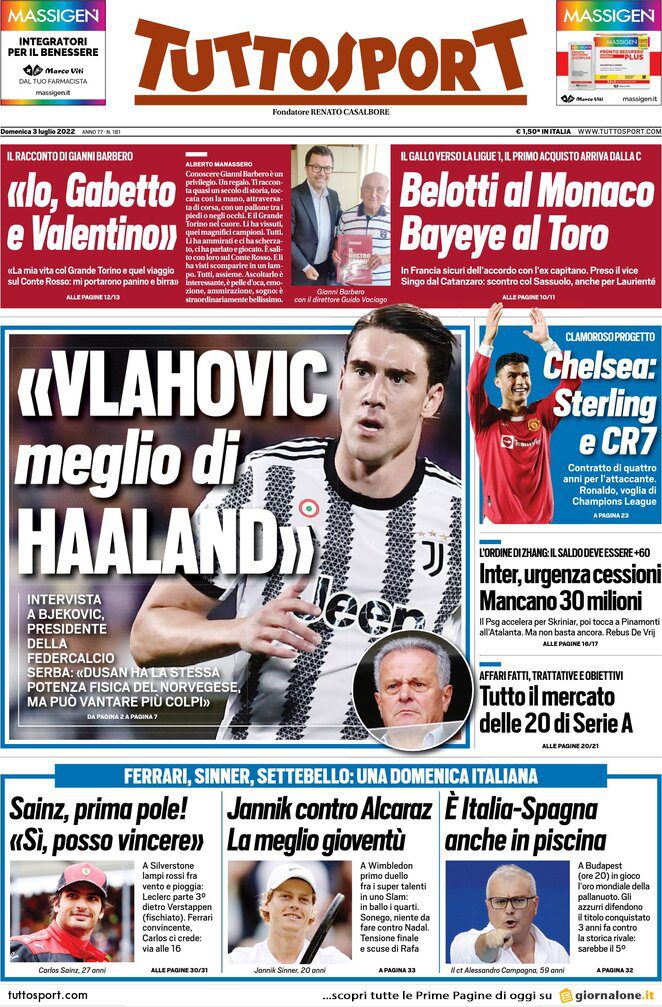 GAZZETTA DELLO SPORT – L’edizione odierna del quotidiano in rosa parla di Cambiaso alla Juventus, operazione che attende di essere chiusa coi crismi dell’ufficialità quando Dragusin tornerà dalle vacanze. Cambiaso, una volta bianconero, dovrebbe rimanere nella rosa di Allegri nonostante le offerte da parte di altri club, come la Salernitana che lo vorrebbe in prestito. Un focus sulla Serie B parla invece delle formazioni che sono già tornate al lavoro e che partiranno in ritiro fra due settimane, come il Genoa di mister Blessin. Sul fronte mercato, interesse del Frosinone per Sabelli.